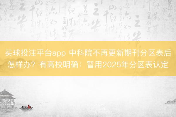 买球投注平台app 中科院不再更新期刊分区表后怎样办?有高校明确:暂用2025年分区表认定