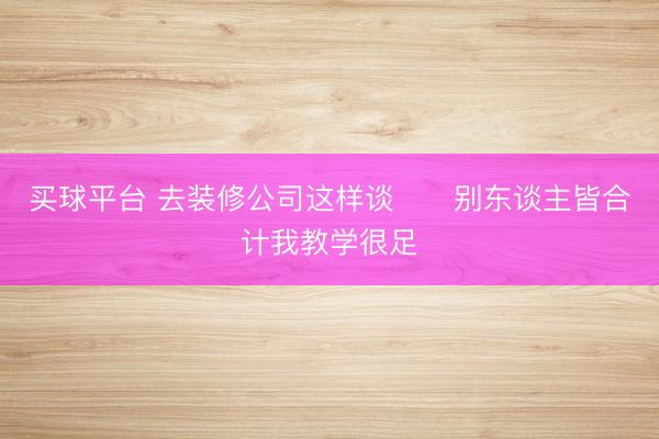 买球平台 去装修公司这样谈‼️别东谈主皆合计我教学很足