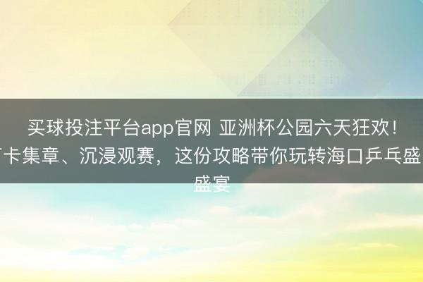 买球投注平台app官网 亚洲杯公园六天狂欢!打卡集章、沉浸观赛,这份攻略带你玩转海口乒乓盛宴