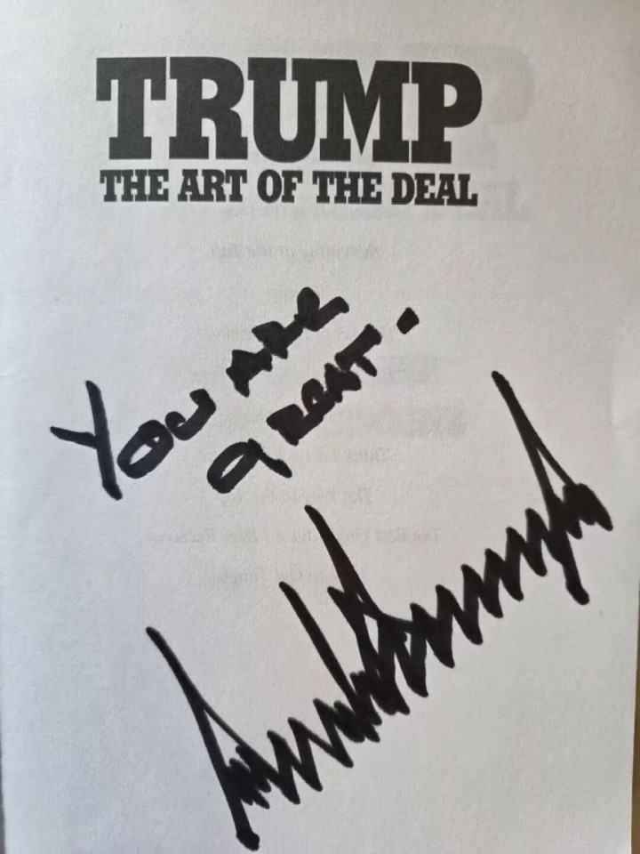 但结果,大大出乎他的意料。特朗普微笑相迎,签名赠书——一本他早年的著作《交易的艺术》,还写字夸赞佩特罗“你很棒”。
