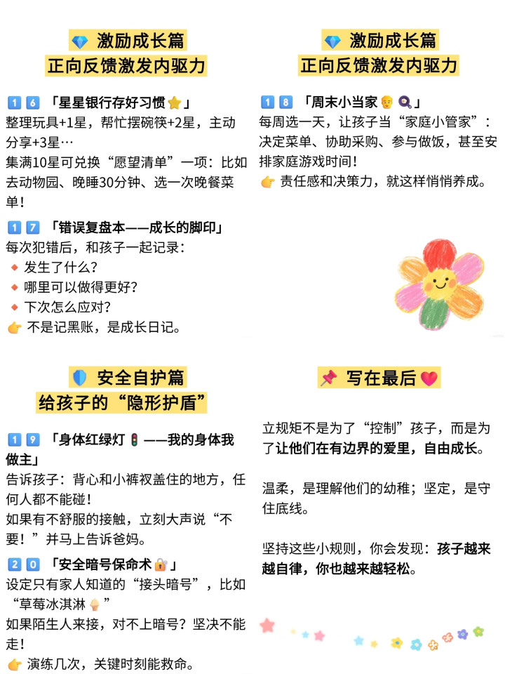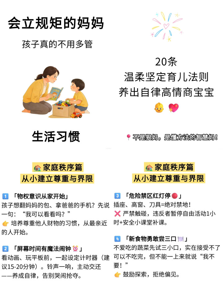 莫得法则的家,就像莫得红绿灯的路口——每次外出都要靠吼、靠拽、靠拉锯战。有了法则,各人都知说念什么本领该停、什么本领能走,当然毋庸天天管。