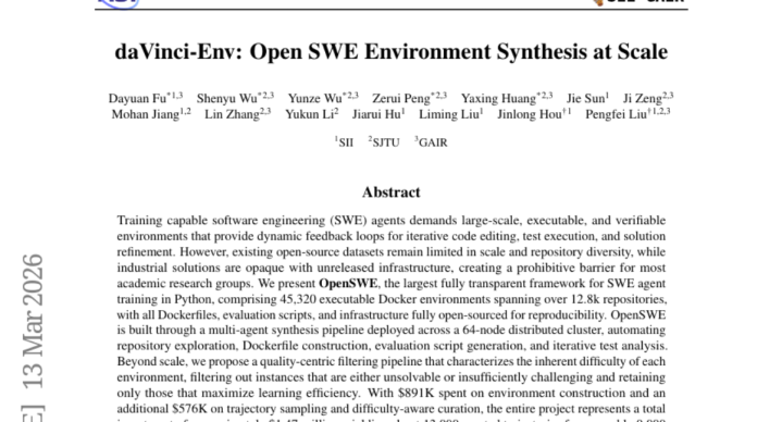 A:OpenSWE是上海交大团队开发的AI软件开辟教师框架,包含45320个着实的软件开辟环境,用于教师概况自动开辟代码罪戾的东说念主工智能系统。它就像一个超等教师营,让AI在数万个不同的软件问题中学习怎么开辟代码bug。