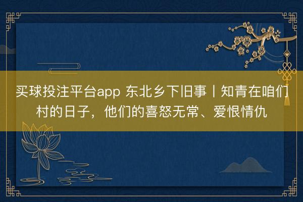 买球投注平台app 东北乡下旧事丨知青在咱们村的日子,他们的喜怒无常、爱恨情仇