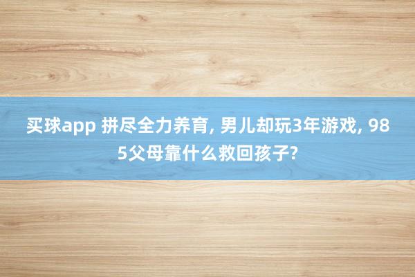 买球app 拼尽全力养育, 男儿却玩3年游戏, 985父母靠什么救回孩子?