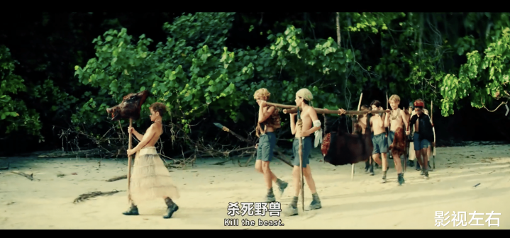 当杰克一勾结谋刻薄并杀死一头野猪,尝到血的滋味时,就意味着他们童年的祛除,善念、精采、理性的消退,恶念、强烈、非理性的全面延长。