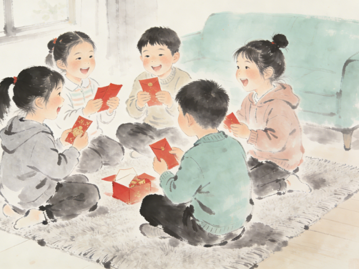 把压岁钱行为一种和睦的庆典,让孩子在祝贺中迟缓长大。