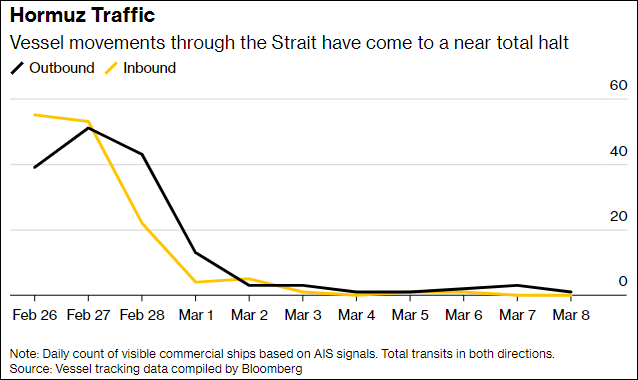 彭博社当地技能3月2日描写,霍尔木兹海峡的施行性关闭,对众人油市而言无异于一次“地震级”冲击。
