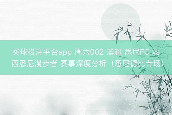 买球投注平台app 周六002 澳超 悉尼FC vs 西悉尼漫步者 赛事深度分析(悉尼德比专场)