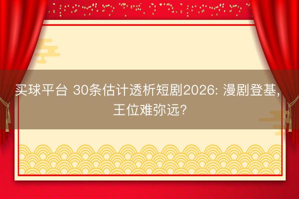 买球平台 30条估计透析短剧2026: 漫剧登基, 王位难弥远?