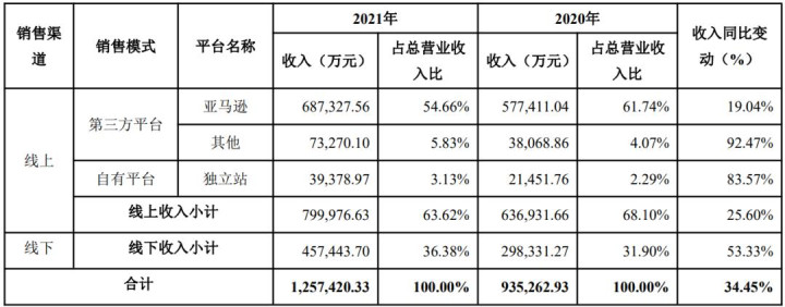 在三者之中,安克一样是最早意志到“不成把所有这个词鸡蛋放在一个篮子里”。为了擢升抗风险才能,其早早便启动“广积粮”,在线上入驻eBay、Temu等平台,鼎力发展零丁站,在线下则布局北好意思Best Buy、Walmart等线下渠说念。在2021年封号潮前后,安克鼎新来自亚马逊的收入占比已降至约54.66%。
