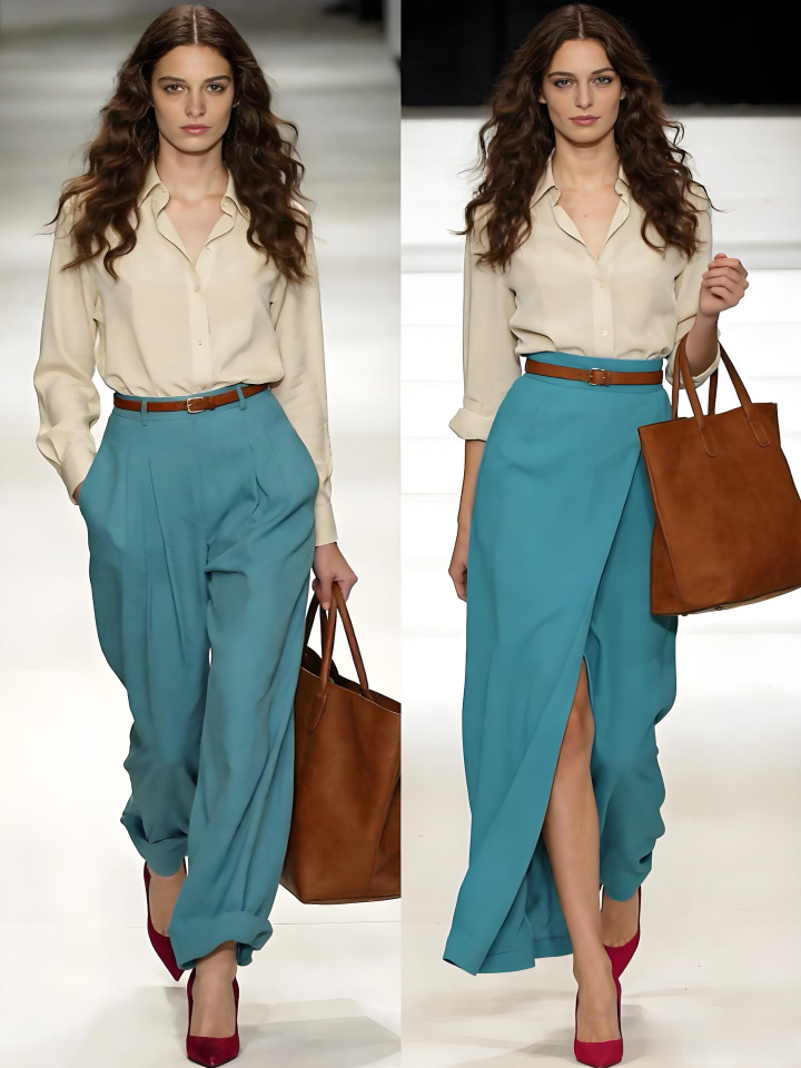 NO.4 米蓝撞色:风凉感职场穿搭天花板
