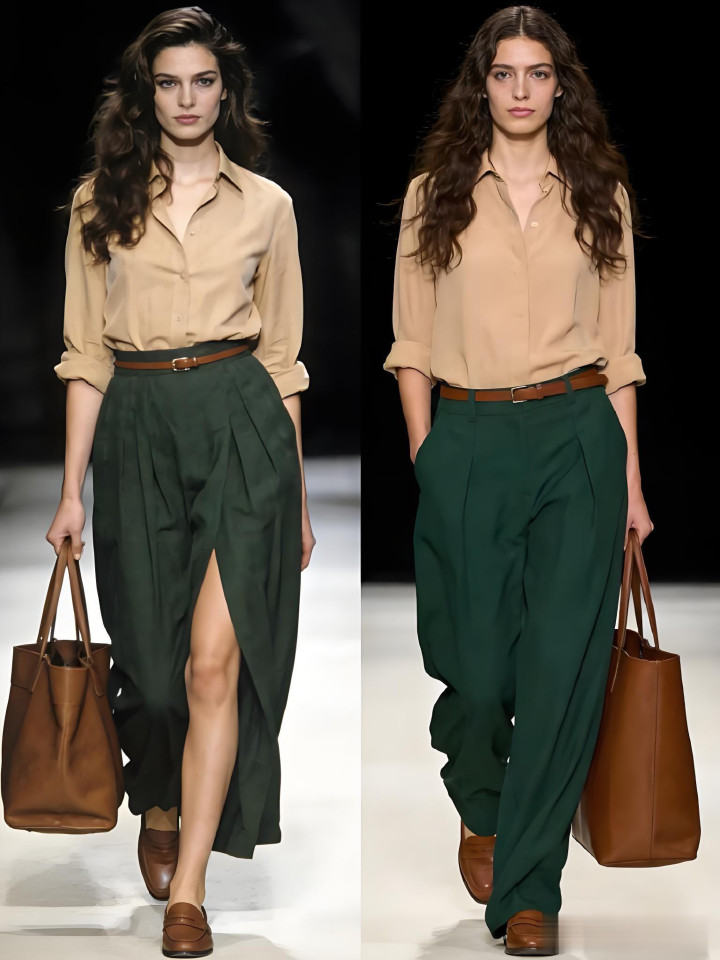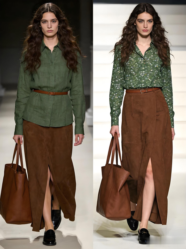 橄榄绿+深棕是一组经典的地面色系撞色,橄榄绿的极新千里稳,搭配深棕的维捏镇定,两种方式交融在一谈,自带高等恣意感,不挑年岁,不挑肤色,是纯属女性的全能配色。