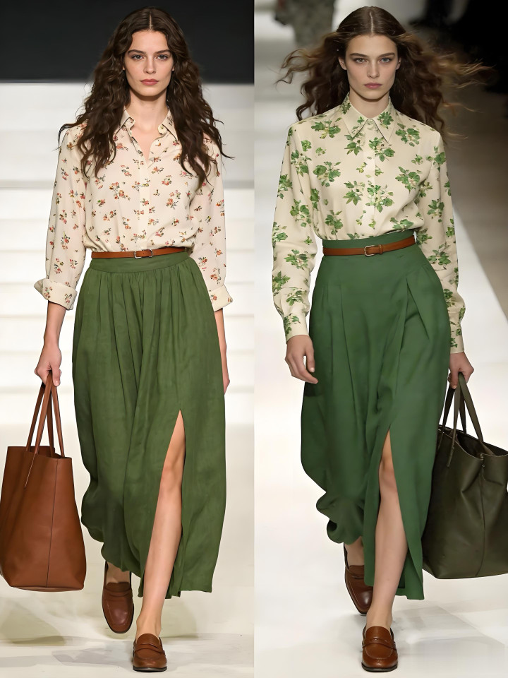 这组造型用碎花+乌绿打造了春日田野风穿搭,极新当然,充满春日气味。既能展现出对生计的喜爱,又能保留恣意即兴的生计立场,善良而猖獗,岁月静好。