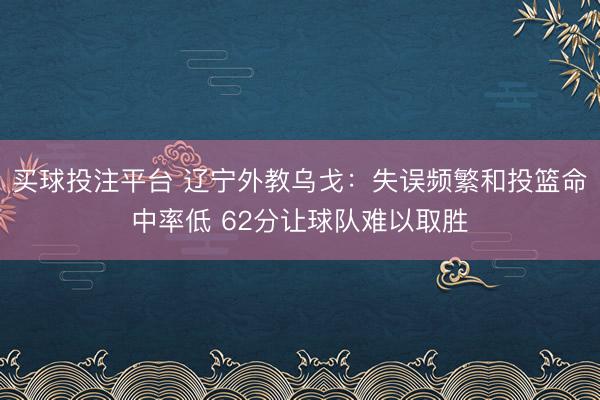 买球投注平台 辽宁外教乌戈:失误频繁和投篮命中率低 62分让球队难以取胜