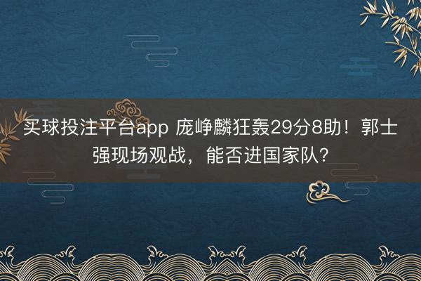 买球投注平台app 庞峥麟狂轰29分8助!郭士强现场观战,能否进国家队?