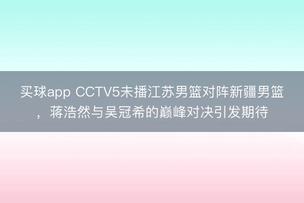 买球app CCTV5未播江苏男篮对阵新疆男篮,蒋浩然与吴冠希的巅峰对决引发期待