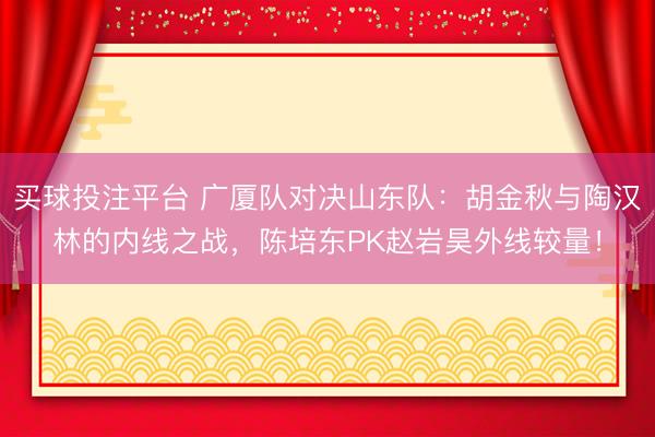 买球投注平台 广厦队对决山东队:胡金秋与陶汉林的内线之战,陈培东PK赵岩昊外线较量!
