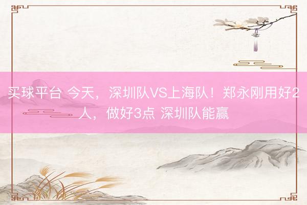 买球平台 今天,深圳队VS上海队!郑永刚用好2人,做好3点 深圳队能赢
