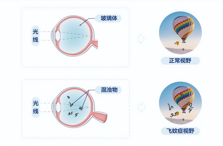 眼球里面有个透明、胶冻状的组织叫玻璃体,年青时它质地均匀、清爽透亮。随着年事增长、用眼过度或其他身分,玻璃体会迟缓液化、收缩、遏抑,这些遏抑的小团块投射在视网膜上,就形成了咱们看到的“飞蚊”。