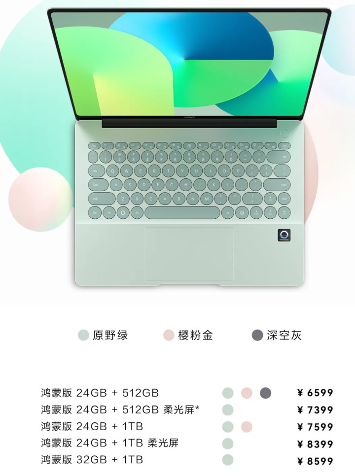 还有华为MateBook 14鸿蒙版24GB+512GB 6599元起。