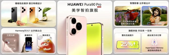 而Pura90Pro带来粉红芭乐、橘子汽水、椰青白、桑果黑四款配色。