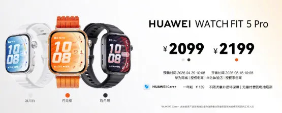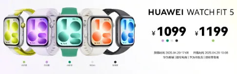 Watch Fit 5搭载1.82英寸屏幕,1099元起。
