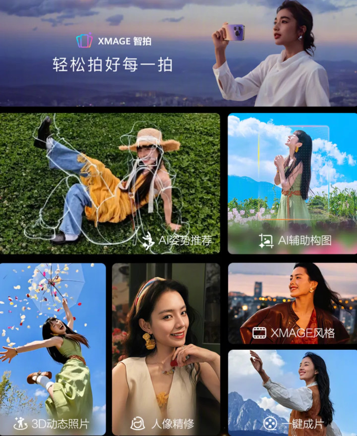 不光是硬件这块很强,在玩法这块华为也带来了“XMAGE智拍”:AI姿势推选、AI辅助构图、XMAGE格调、3D动态像片、东谈主像精修、一键成片……