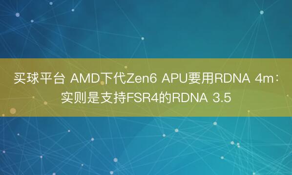 买球平台 AMD下代Zen6 APU要用RDNA 4m:实则是支持FSR4的RDNA 3.5
