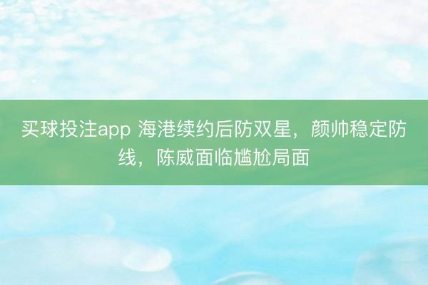买球投注app 海港续约后防双星,颜帅稳定防线,陈威面临尴尬局面