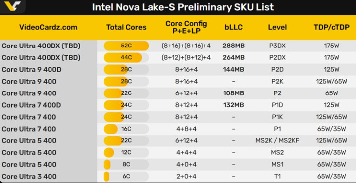 英特尔下一代基于Nova Lake架构打造的酷睿Ultra 400系处分器可以说备受阔绰者的期待,尽头是英特尔也摄取之前游戏性能不如AMD处分器的教会,将会在酷睿Ultra 400处分器上加入bLLC缓存,从而在游戏性能上大幅晋升,当今网上也关联于酷睿Ultra 400系处分器的最新曝光,称带有bLLC缓存的酷睿Ultra 400系处分器将会以D以及DX进行后缀透露,以更好地匡助游戏玩家选用妥当的处分器。