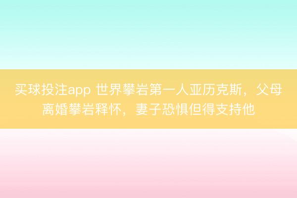 买球投注app 世界攀岩第一人亚历克斯,父母离婚攀岩释怀,妻子恐惧但得支持他