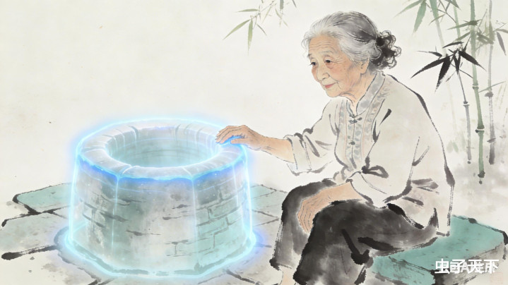 石头在蟾光下泛着色泽,井绳的凹槽了了可见。