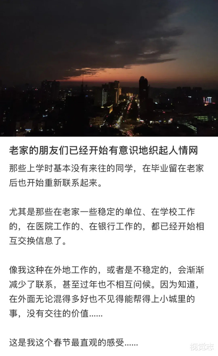 当亲戚见你在大城市使命/上学,还会条目你给他们的孩子先容使命/旅游理睬/补习语数英,哪怕相互并不老到,你也会由此摊上一堆日暮途远的承诺。