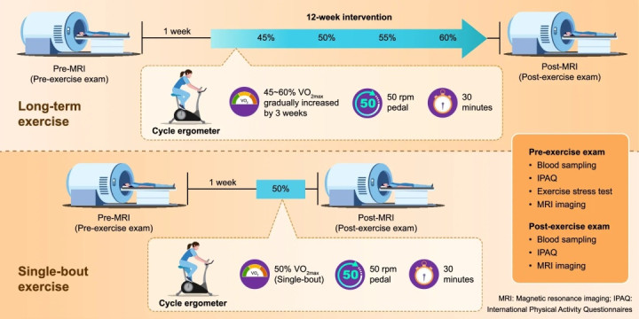 商榷东谈主员把志愿者分红两组:一组只通晓一次,另一组坚抓每周3次、每次30分钟骑自行车,抓续整整3个月。