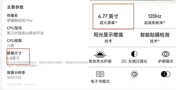 这个尺寸亦然搞笑,Play10T是6.8英寸,这个畅玩80Pro就尴尬了,买球投注平台app官网在官网先容内部,上头主要参数标注的是6.8英寸,而底下细则却是写6.77英寸,我思问这到底若干英寸?