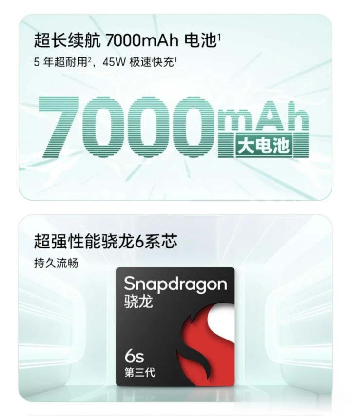 续航雷同跟荣耀Play10T一样的7000毫安大电板,什么超能效电板+智能节电引擎大幅提高电板使用效果,这种先容皆一模一样,就连充电效果也一致的45W快充。